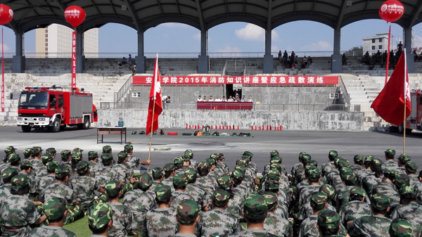 9月15日下午,Beat365与安康市消防支队联合在学校江北校区举行“Beat365唯一官方网站2015年消防知识讲座暨应急疏散演练”活动。安康市消防支队副支队长吴小刚、Beat365唯一官方网站副书记胡鸿晓、2015级学生军训指挥员少校吴勇睿等领导和消防支队防火处、Beat365唯一官方网站学工部、团委、保卫处等部门负责人出席了演练活动,Beat3652015级新生及各院系辅导员老师、学工部门工作人员、学生护校队员、江北校区物业管理人员等共3000余人参加。
