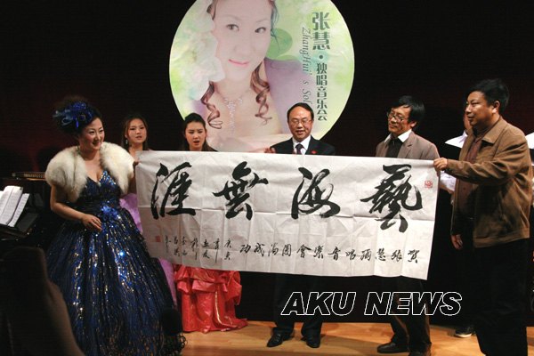 4月26日晚,我院艺术系青年教师张慧个人独唱音乐会在1号教学楼6楼报告厅举行。学院副院长杨行玉,市委宣传部副部长、市文联主席马昌琪,安康音协副主席刘秉平,艺术系主任钟正义、书记冯丰收等莅临音乐会;学院部分系部和职能处室领导及师生200余多人观看了音乐会。