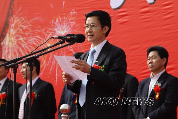 9时正,王兴林院长宣布我院新校区建设开工仪式开始。