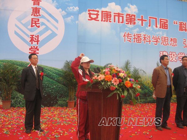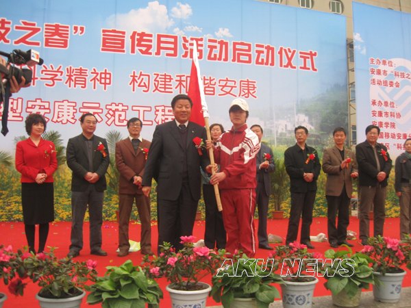 3月22日早上十时,安康市第十八届“科技之春”活动在市中心广场拉开帷幕。市委副书记崔光华,副市长巨栓科等领导以及全市科技、文化、卫生、计生、教育、农业等部门参加“科技之春”宣传活动启动仪式。 启动仪式上,市委副书记崔光华向我院科技志愿者服务队授旗,我院青年志愿者代表本次“科技之春”志愿者进行了宣誓仪式。 启动仪式最后,由我院大学生艺术团为本次“科技之春”活动献上了一场精彩的文艺演出。