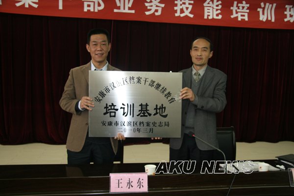 三月三十日,“安康市汉滨区档案干部继续教育培训基地”在我院继续教育学院挂牌,基地首期培训班同时开班,来自汉滨区区直机关和乡镇的近百名档案管理干部参加培训学习,继续教育学院副院长王永东出席并致辞。汉滨区档案史志局朱炜局长授牌,市档案局副局长何向群出席并讲话。本次培训班为期4天,以业务技能培训为主,重点进行电子档案管理软件技术、档案法规、归档文件整理规则、档案管理与保护等方面的培训,将为全面提升汉滨区档案事业品质奠定坚实的技术基础。