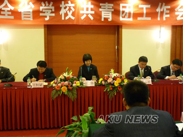 杨涛代表我院师生对与会的各位领导和代表表示热烈欢迎, 随后杨书记介绍了我院的发展概况和办学特色,并以一名老团干的身份和大家谈了自己的经验和感受。他强调我院将协助团省委做好会议各项服务工作,确保会议的顺利召开。希望本次会议能进一步加强院校之间联系和交流,促进共青团工作再上一个新台阶,为开创新时期共青团工作做出积极的贡献。
