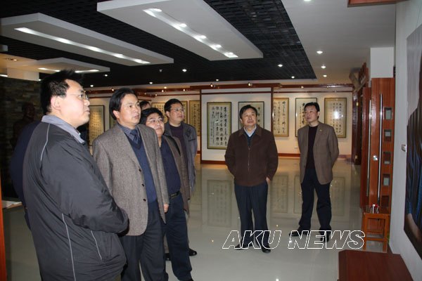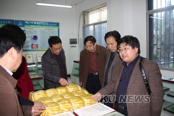座谈会后,李海龙一行在向纪明陪同下参观了我院陕西省蚕桑重点实验室和陈少默纪念馆。