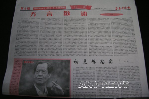 为提升学院报纸的文化品位和影响力,扩大学院对外宣传的力度,在学院领导的支持下,学院宣传部及学院报纸编辑部从报纸的可读性及文学性抓起,在增设报纸栏目的同时,加大对外联系力度,向我省部分知名作家进行约稿。12月份,通过联系,陈忠实先生欣然应允为我院院报撰稿,并于月末寄来作品《方言散谈》。