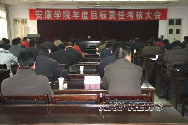 为了深入贯彻落实科学发展观,切实加强作风建设,推动工作落实,推进学校发展,促进校园和谐,形成正确的用人导向和干事业的浓厚氛围,学院党委决定在全校24个职能部门和电子与信息工程系、外语系两个教学院系实行年度目标责任考核暨中层领导班子和领导干部“三位一体”考核,以建立科学全面、客观公正的考核评价体系,引导各级领导干部牢固树立和全面落实科学发展观,始终坚持一切从实际出发,自觉遵循客观规律,推动学院事业又好又快发展。 1月11日,学院在图书馆六楼报告厅召开2009年度目标责任考评大会。学院党政领导、全体中层领导干部参加了考核大会。党委书记杨涛主持了会议并对考核工作纪律提出了明确要求。