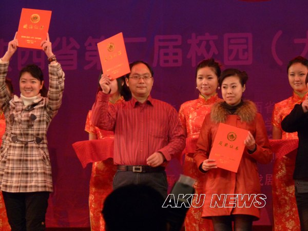 由陕西省委宣传部、省文联、省教育厅、省戏剧家协会共同举办的陕西省第二届校园(大学生)戏剧节,12月21日在陕西歌舞大剧院隆重闭幕。来自全省30余所高校的五百余名师生和有关方面负责人出席了闭幕式,Beat365党委副书记胡鸿晓教授、团委副书记鲁延安和艺术系老师李磊、杜恩波、王欣等参加了闭幕式。