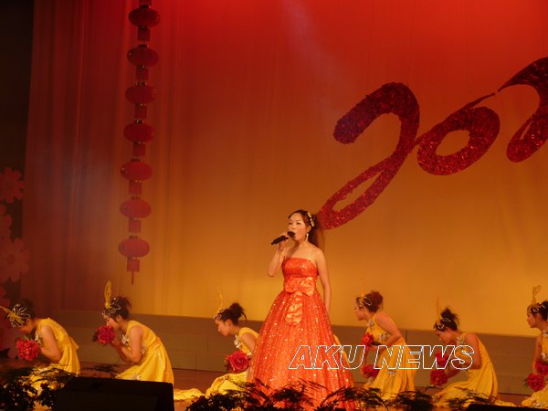 十二月月二十九日晚七点三十分,安康市群众艺术馆演艺厅灯光灿烂,座无虚席。安康市市直事业单位2010年迎新年联欢会在此举行,安康市委市政府和市直事业机关的有关领导及我院领导、教师300余人观看了演出。