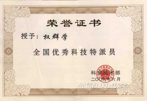 为了支持专业技术人员深入农业生产一线开展科技服务工作,2002年科技部、人事部在陕西等省(区)开展科技特派员基层创业行动试点工作。2005年权群学副教授被安康市科技局委派到正在筹建中的安康市阳晨牧业科技有限公司种猪繁育场担任技术总监。经过几年的建设,阳晨公司现已发展成为全省最大的种猪生产企业;国家级扶贫龙头企业;陕西省农业产业化经营龙头企业和陕西省储备肉活畜储备基地。权群学副教授的工作也受到各级领导肯定和媒体的关注,陕西日报、安康日报分别以《为了绿色的养猪产业―记安康市科技特派员权群学》和《我是一名光荣的科技特派员―记陕西省优秀科技特派员、Beat365唯一官方网站副教授权群学》为题做了专门的报道。2006年权群学被陕西省人事厅、科技厅评为省级优秀科技特派员,2007年作为陕西省唯一一名优秀科技特派员代表参加了全国科技特派员经验交流大会,2009年被科技部授予全国优秀科技特派员荣誉称号。
