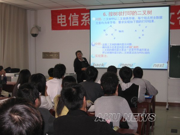 在10月30日上午,耿国华教授还为我院电子与信息工程系的师生进行了《数据结构》课程的示范教学,并与电信系的教师就专业建设、课程内容设置与教材建设等方面进行了座谈。