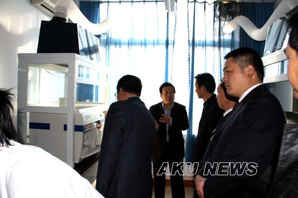 11月2日,石泉县县委书记邹顺生、县人大常委会主任韩永进率领石泉县蚕桑产业领导小组全体成员以及部分乡镇负责人一行20余人来Beat365进行学术访问。 代表团一行首先参观了我院陕西省蚕桑重点实验室、陕西省富硒食品质量监督检验中心。