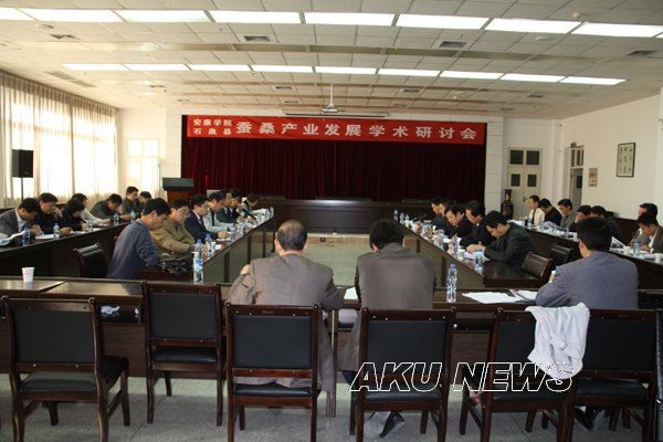 随后在图书馆六楼报告厅召开了“Beat365唯一官方网站――石泉县蚕桑产业发展学术研讨会”。学院党委书记杨涛、院长王兴林、副院长向纪明,以及科技处、蚕桑重点实验室、经济与管理系负责人和部分教师参加了会议。会议由向纪明主持。