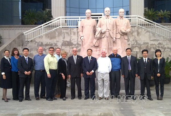10月19日上午,美国肯塔基州前州长、美国州长协会前会长保尔•爱德华派顿及其夫人,肯塔基州匹克威尔市市长威廉姆•多罗万•布莱克本,匹克威尔市前市长、东肯塔基广播网总裁帕姆拉•托德•梅,中美文化交流基金会会长、肯塔基州摩海德大学终身教授别比尔•布斯,别克桑迪学院音乐指挥兼商会市场开发与项目协调员劳拉•露丝•希尔等一行,在安康市市政府副秘书长赵立根、安康市教育局局长杜科持等人陪同下来我院考察交流。 在王兴林院长、陈刚副院长、学院办公室主任屈险峰等人的陪同下,美国友人一行参观了我院陈少默纪念馆和陕西省蚕桑重点实验室,并到艺术系进行了学术交流。