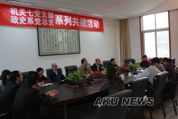 自院党委号召在全院基层党组织中开展“五联共建”活动以来,机关七支部与政治与历史系党总支认真落实“五联共建”制度,按照共享资源、共同服务、共谋发展、共创和谐的原则,围绕“以共建促党建,以共建促发展”这一主题,全方位开展共建活动。上半年,在毕业生教育、就业、招生等方面进行全面合作。七支部充分发挥职能部门的作用,协助政治与历史系开展毕业生教育、提供招生就业信息、服务招生就业过程等方面的工作,实实在在地促进政治与历史系发展,使师生受益。政治与历史系则发挥自身优势,在招生宣传、就业服务等方面协助七支部工作,达到了双赢的目的。 10月29日,共建双方召开学习座谈会,共同商讨党员教育培养、组织活动开展等工作。会上,对“共建方案”进行了修订,组织两个部门的党员学习了十七届四中全会通过的《中共中央关于加强和改进新形势下加强和改进党的建设若干重大问题的决定》,并就相关共建事项进行了磋商。共建双方表示,要通过共建活动,充分发挥各自的特长和优势,着力解决师生在学习、生活、工作中的困难,充分发挥党员的先锋模范作用,促进共同发展,为实现学院更好更快的发展作出贡献。