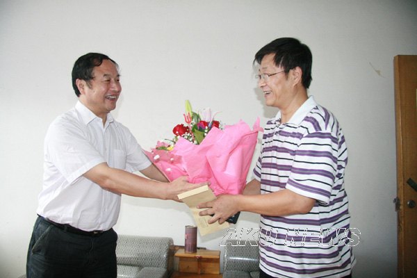 9月8日上午,在第25个教师节来临之际,学院党委书记杨涛,院长王兴林,党委副书记、纪委书记闵小平,分别在组织部、人事处负责同志的陪同下,亲切慰问了全国优秀科技特派员、13115工程项目主持人、安康市农业畜牧首席专家权群学副教授,陕西省教学名师周政教授以及中文系赵桃副教授等人,并向他们送上鲜花和慰问品,感谢他们在学校发展中做出的贡献,衷心地祝福他们节日愉快!并通过他们转达学院领导对全校教职工的节日问候。