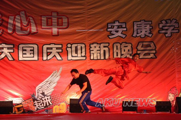 晚会在大学生艺术团电声乐队激情四射的演出中拉开了帷幕。晚会共分“青春校园”、“魅力新星”和“我爱中国”三大板块。在青春校园板块,我院师生的合唱表演、武警支队教官擒拿格斗操练、青春洋溢的街舞、健美操等节目展示了我院师生的风采和军训生活的点滴。“魅力新星”的表演者来自09级新生,他们出众的舞台表现力,展示我院新一届学生的生机和活力。“我爱中国”以传统的中国风横扫会场,诗朗诵、舞蹈、武术等表演将气氛推到高潮。我院青年教师李磊一曲《中国永远收获着幸福》,表达我院师生对祖国真挚的祝福和对新同学的希冀。