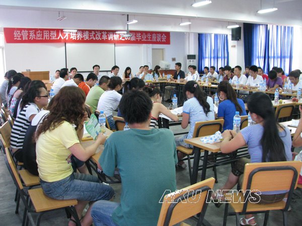 为了有效征求学生对系上人才培养模式和各项工作的意见和建议,切实搞好各项整改提高工作,2009年7月1日该系组织召开了“经管系应用型人才培养模式改革调研之09届毕业生座谈会”。经管系全体教师以及部分09届毕业生共100余人参加了座谈会。在座谈会上,师生们就用人单位需要的人才素质、专业特色、就业观念等方面展开了热烈的讨论,同学们回顾大学学习生活、总结学习工作体会,对专业人才培养方案、教学管理等方面提出了许多宝贵的建议。最后,同学们将系上提前分发的《应用型人才培养模式改革调查问卷》作为临行前的最后一份作业和礼物送给母校,积极为母校的发展建言献策,也表达了他们的殷切期盼。整个座谈会收到了良好的效果。
