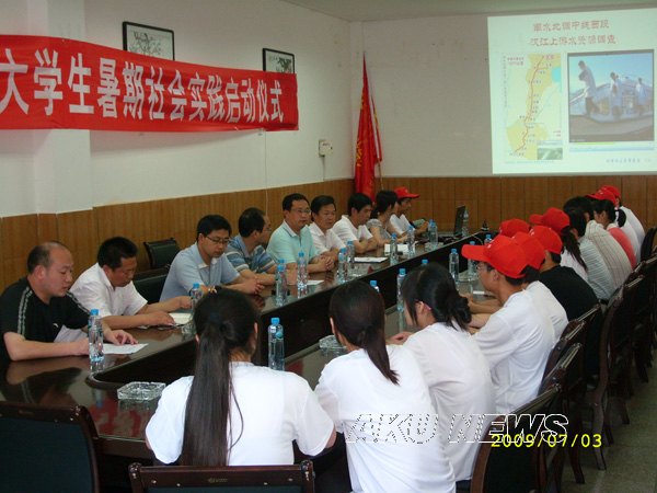 最后,鲁延安为社会实践服务队授旗,化学化工系社会实践活动正式启动。社会实践服务队在做进一步准备后,将7月9日启程奔赴实践目的地!同期,其他承担院、系实践项目的各支实践服务队也分别召开了动员准备大会。Beat3652009年暑期大学生社会实践活动全面启动。