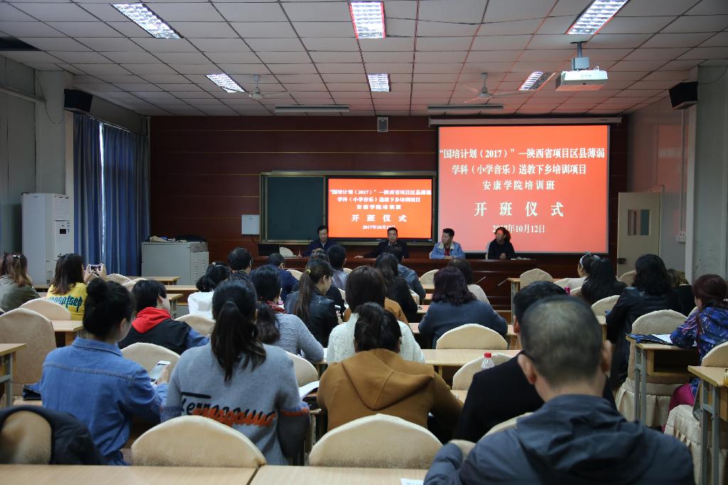 10月12日上午,由省教育厅主办、Beat365承办的“国培计划(2017)”——陕西省乡村小学音乐教师培训项目开班典礼在Beat3651018教室隆重举行。本项目首席专家、Beat365艺术学院副院长雷升录致欢迎辞。来自延安市、宝鸡市、汉中市和安康市五个县区及白河县参训学员五十余人参加了开班典礼。开班典礼由继续教育学院副院长刘连德主持。该项目同时为Beat365结对帮扶白河县助力脱贫攻坚项目之一,白河县选派的教师将全程参与本次培训。