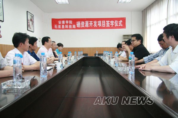 6月 8日下午,我院与石泉县科技局科技合作协议签订仪式在东校区第一会议室举行。学院副院长向纪明教授,学院科技处、化学化工系领导和相关人员,石泉县副县长梁胜新,安康市科技局、石泉县科技局领导和相关人员参加了签字仪式。签字仪式由学院科技处副处长郭文久博士主持。