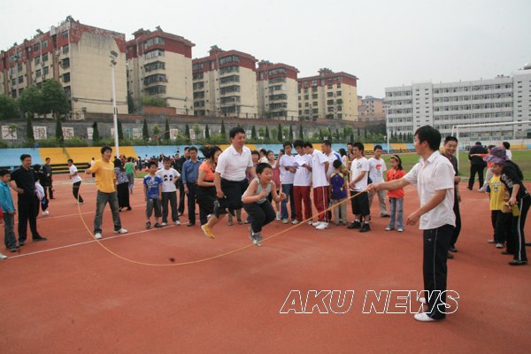 6月30日上午9时,院党委副书记、工会主席胡鸿晓宣布竞赛活动开始,体育场顿时成了欢乐的海洋。孩子们按不同年龄分别参加了抬轿子、找爸爸妈妈、大西瓜小西瓜、背篓投乒乓球、跳长绳、袋鼠跳,篮球投篮等项目的趣味体育比赛。