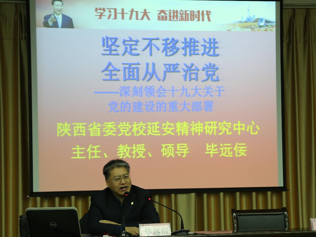 在为期五天的培训中,省委政策研究室副主任蒋录祥与省委党校延安精神研究中心主任毕远佞、经济学教研部杨洁教授、党建教研部岳东峰教授等四位专家分别从“学习贯彻十九大精神,谱写新时代陕西追赶超越新篇章”、“坚定不移推进全面从严治党”、“十九大精神与经济建设”、“新时代反腐败斗争新部署”四个主题,紧扣十九大精神和习近平新时代中国特色社会主义思想,以历史和现实的角度,以国际和国内的视角,结合陕西省情及发展的特点和需要,对新思想、新时代、新目标、新部署和新要求的主要内涵、历史背景、重大意义做了精确的解读和阐释,为全体学员学习领会十九大精神做了深入透彻、详实生动的专题辅导。