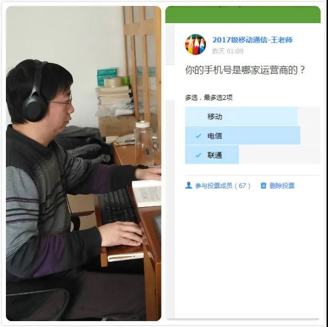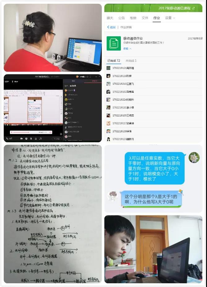 信息工程专业的教研室主任、被同行们戏称为老黄牛式默默付出的王立华老师,本学期讲授的是《移动通信工程》,第一次课就进行了2小时15分钟。利用QQ群课堂直播讲解,内容丰富细致,但学生们却丝毫不觉思维和视觉疲劳。整堂课融入了PPT讲解、在线播放视频、分享屏幕操作等,每一个知识点后都会与学生进行线上互动,课堂氛围轻松活跃。除此之外,王老师还利用屏幕录课的方式,弥补了群课堂不能回放课堂的不足,学生反馈非常好。