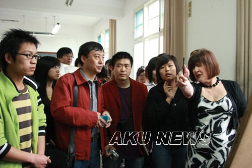上午,桑德女士在学院相关人员陪同下走进艺术系07级画室,进行观摩。在课堂上,桑德女士利用自己独到的专业技能知识对学生的课堂习作进行了认真的指导,帮助学生分析画面的不足之处及出现问题的原因;同时,桑德女士还向艺术系师生进行介绍了英国的绘画专业教学情况。在与艺术系教师交流沟通,详细了解艺术系专业教学条件、教学方法等情况后,桑德女士对我院艺术系的教学现状表示十分赞赏。