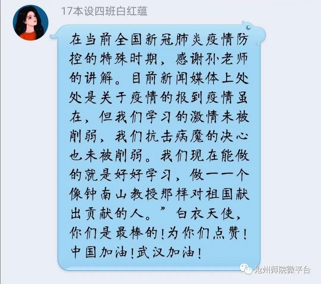 培训结束后,同学们依然热情高涨,纷纷在QQ群里发表了自己对此次培训的感想,表达了对疫情早日结束的期盼和对疫情期间所有付出的人们的最高敬意。