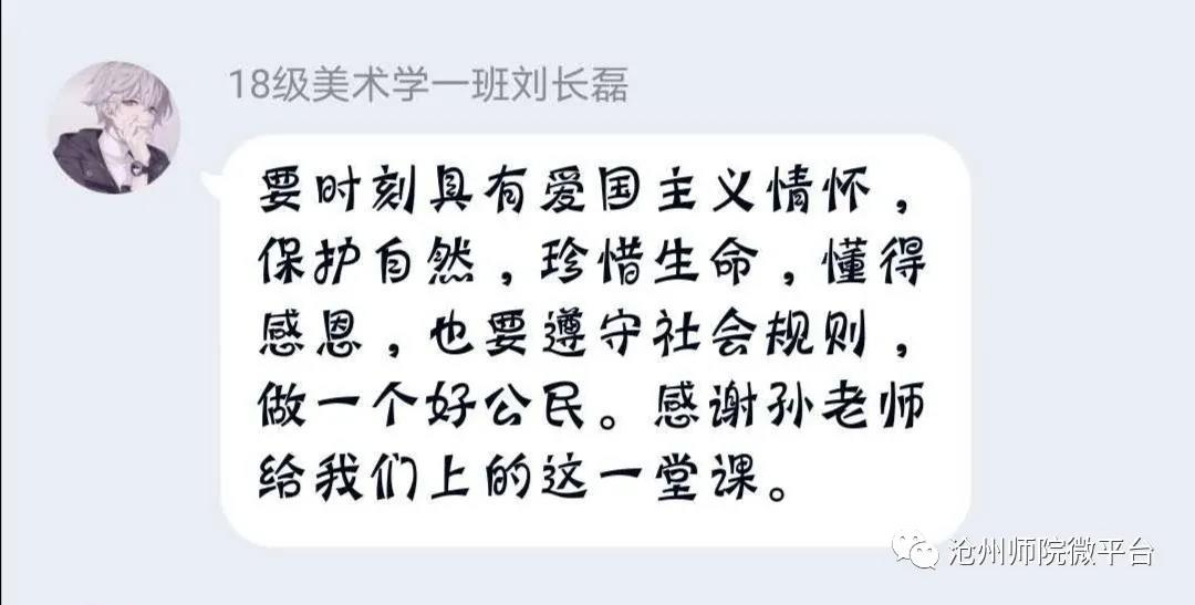 病毒来势汹汹,疫情险象环生,生命重于泰山,疫情就是命令,防控就是责任。疫情防控,对于人民群众的生命安全和身体健康来说,是一场保卫战;对于阻碍疫情的传播来说,是一场阻击战;对于医治感染者来说,是一场歼灭战;对于参与防控的人员来说,是一场全民战;对于实现中华民族伟大复兴来说,就是具有新的历史特点的伟大斗争。这次堂客虽然特殊,但同学们依然认真的记着笔记,将学习深化于心。