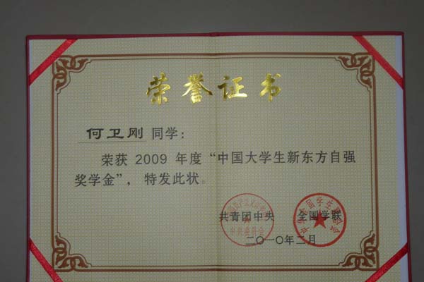 由共青团中央、全国学联主办,《中国青年报》承办的2009年度“中国大学生自强之星”评选活动在陕西尘埃落定,我院数学系何卫刚同学获得2009年度“中国大学生新东方自强奖学金”、英语系杨美玲同学和经济管理系周高玲同学分别荣获“中国大学生自强之星助学金”。