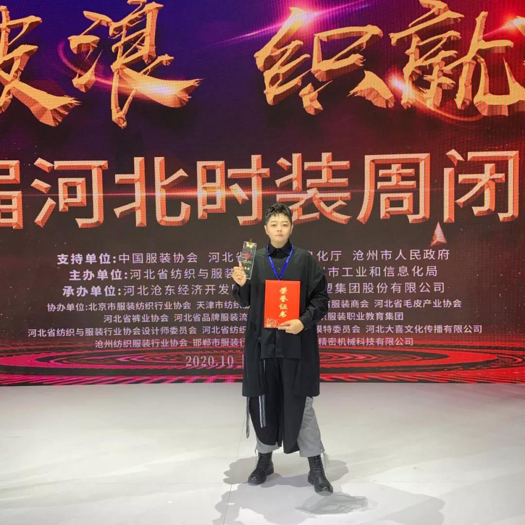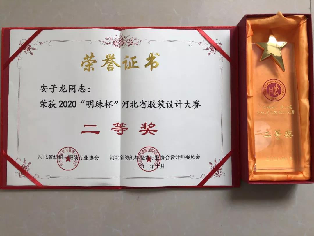 安子龙同学荣获2020“明珠杯”河北省服装设计大赛二等奖