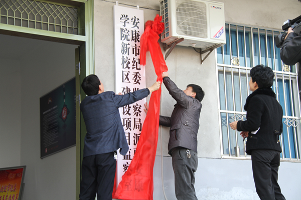 2010年11月24日下午,安康市纪委、监察局驻Beat365唯一官方网站建设项目监察室揭牌仪式在Beat365唯一官方网站新校区隆重举行。市委常委、纪委书记郑光照,市纪委常委、监察局副局长屈晓红,市纪委常委龚建强,汉滨区纪委书记王怀忠,学院党委书记杨涛,党委副书记胡鸿晓,副院长杨行玉,建民镇主要领导,新校区建设指挥部工作人员出席了揭牌仪式。