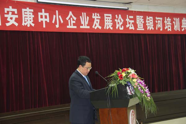 11月27日,我院与市中小企业局联合举办、经济与管理系承办的“第四届安康中小企业发展论坛暨银河培训典礼”在我院图书馆六楼报告厅隆重举行。我院党委副书记胡鸿晓教授、副院长向纪明教授出席本次活动活动,省决策咨询委员会办公室主任郭卫东,省中小企业局、省中小企业服务中心、市工信局的领导,各县经贸局、中小企业局局长,全市规模以上中小企业高层管理人员,我院科技处、经济与管理系领导及教师、政史系部分教师共210余人参加了论坛活动。