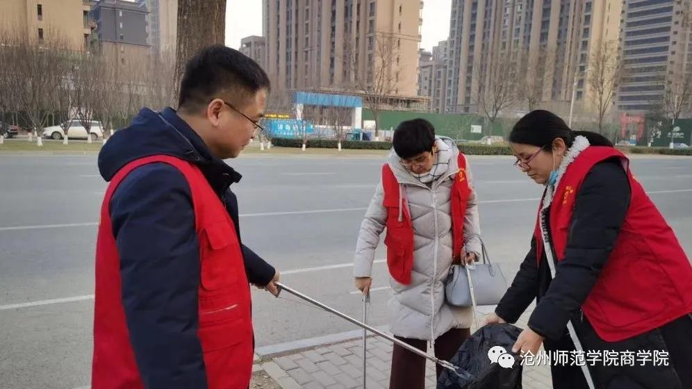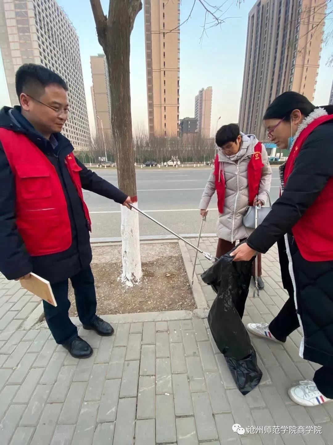 为了贯彻落实习近平总书记关于深入开展爱国卫生运动的重要指示精神,结合“严细深实快”作风教育,弘扬志愿服务精神,商学院响应号召,积极开展文明创城志愿服务活动,12月22日商学院党总支书记毕卫华带队,与其他党员教师志愿者一同对太阳集团至张庄子路段进行了环境卫生清理。