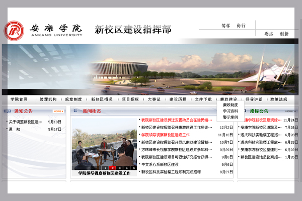 一是开设廉政建设网络专栏。在新校区建设网页上开辟“新校区建设党风廉政建设专栏”,设立了“廉政法规”、“学习资料”、“警示案例”等子栏目,上传相关内容,供新校区建设工作人员学习参考。
