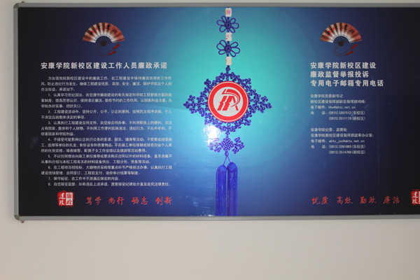 二是“廉政承诺”上墙,新校区指挥部监审室与每位从事新校区建设工作人员签订“廉政承诺”,把“廉政承诺”内容制作为大幅专栏悬挂在指挥部办公楼大楼门厅,时刻提醒新校区建设工作人员践行诺言。