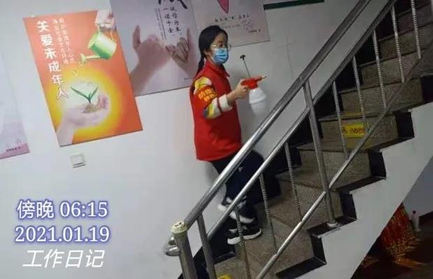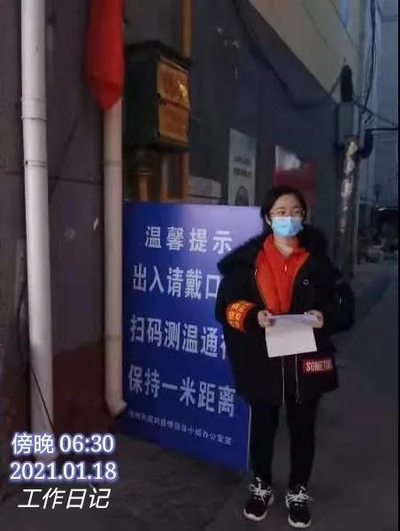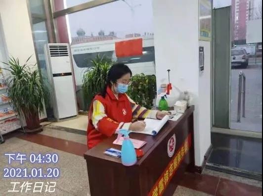 社区的工作量很大,并且人员短缺,但是没人抱怨,都坚守在岗位上。起初,我是为社区人员做出入登记,在社区大厅执勤,严把入口关:指导居民扫码、为居民消毒、测体温、登记信息。也会和其他志愿者们在街道站岗执勤,虽然天气很寒冷,但是和大家一起守护家园的感觉却是暖暖的。