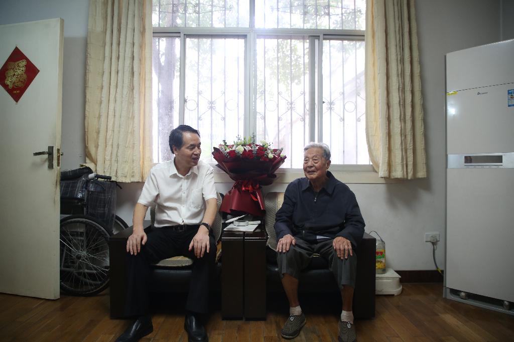 9月1日上午,在中国人民抗日战争暨世界反法西斯战争胜利75周年来临之际,学校党委书记王国良,在离退休工作处副处长陈立强陪同下,带着鲜花和慰问金来到离休干部武斌家里走访慰问。王国良书记高度赞扬了武斌同志在抗日战争时期对安康社会及教育事业,尤其是对创建原安康大学、安康师范专科学校所做出的重要贡献,同时详细询问了武斌同志的饮食起居及身体健康状况,表示学校一定会最大限度的满足武斌同志的各项要求,祝愿武斌同志身体健康、安享晚年。武斌同志及家人对学校在各方面的悉心照顾表示衷心的感谢,表示会持续关注学校的建设发展,并祝愿学校的明天更好。