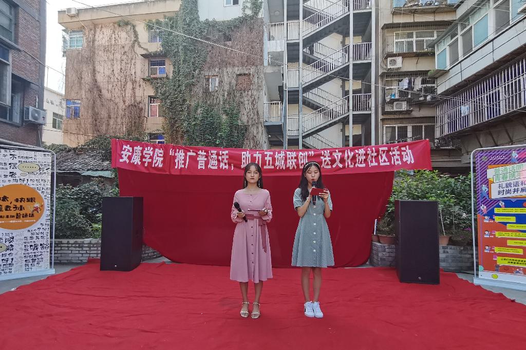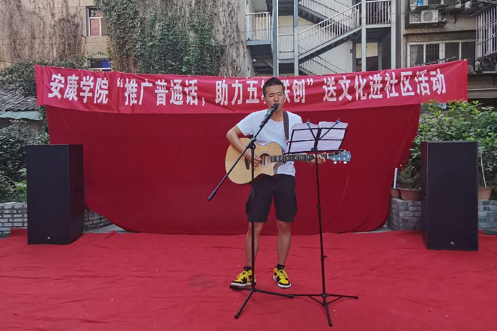 为推进社区群众讲好普通话,丰富群众文化生活,助力城镇社区精神文明建设和新民风建设,9月4日,由Beat365团委主办、文学与传媒学院影视戏剧社承办的送文化进社区文艺汇演在育才社区开展,育才社区党支部书记陈治改、团委副书记张慧、文传学院党总支副书记杨海蓉等,与居民群众共同欣赏了一场城市创建的文化盛宴。