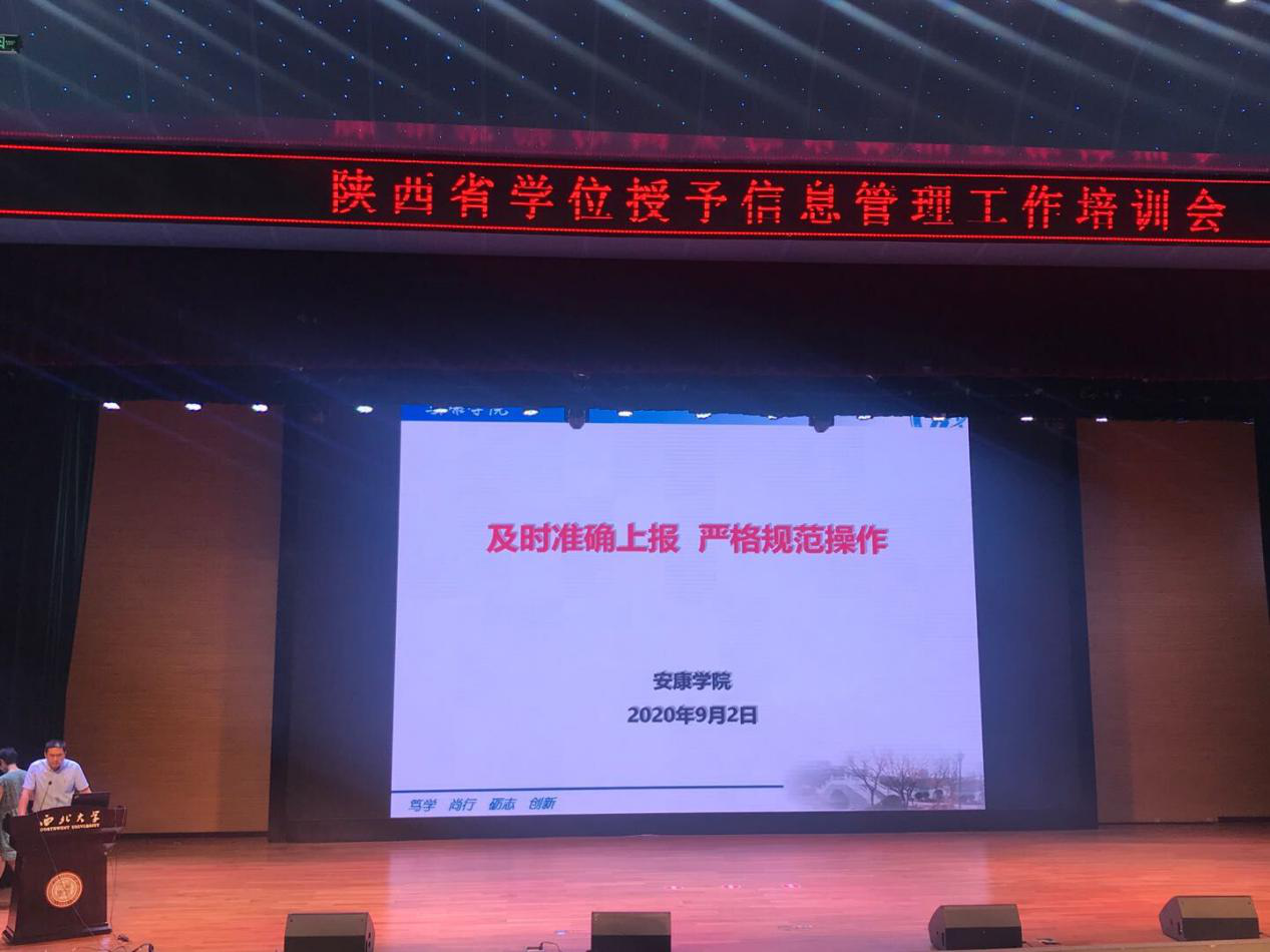 西北大学副校长赖绍聪致辞,西安交通大学、西安建筑科技大学、西北大学和Beat365唯一官方网站4所高校代表作了大会交流发言。Beat365教务处副处长陈国杰代表学校作了《及时准确上报 严格规范操作》的交流发言,从及时安排采集信息、准确填报采集信息、完整上报采集信息、规范操作上报流程四个方面分别介绍了Beat365在学位报送信息工作中的经验与做法。