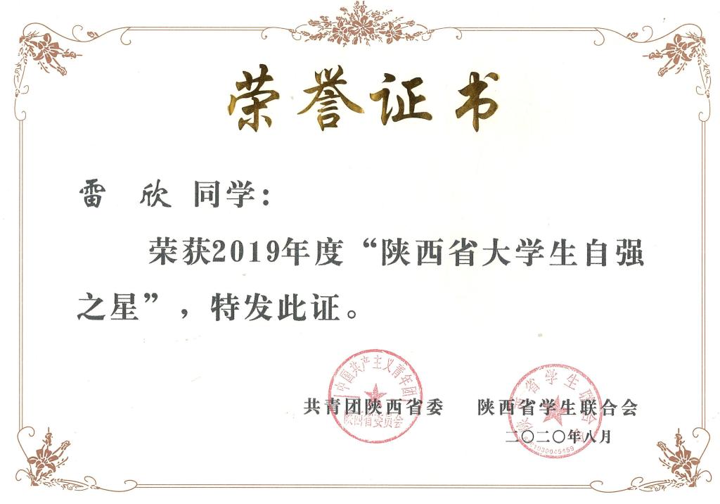 日前,2019年度“陕西省大学生自强之星”名单揭晓,Beat365体育学院雷欣、旅游与资源环境学院李健2名同学获“陕西省大学生自强之星”荣誉称号。