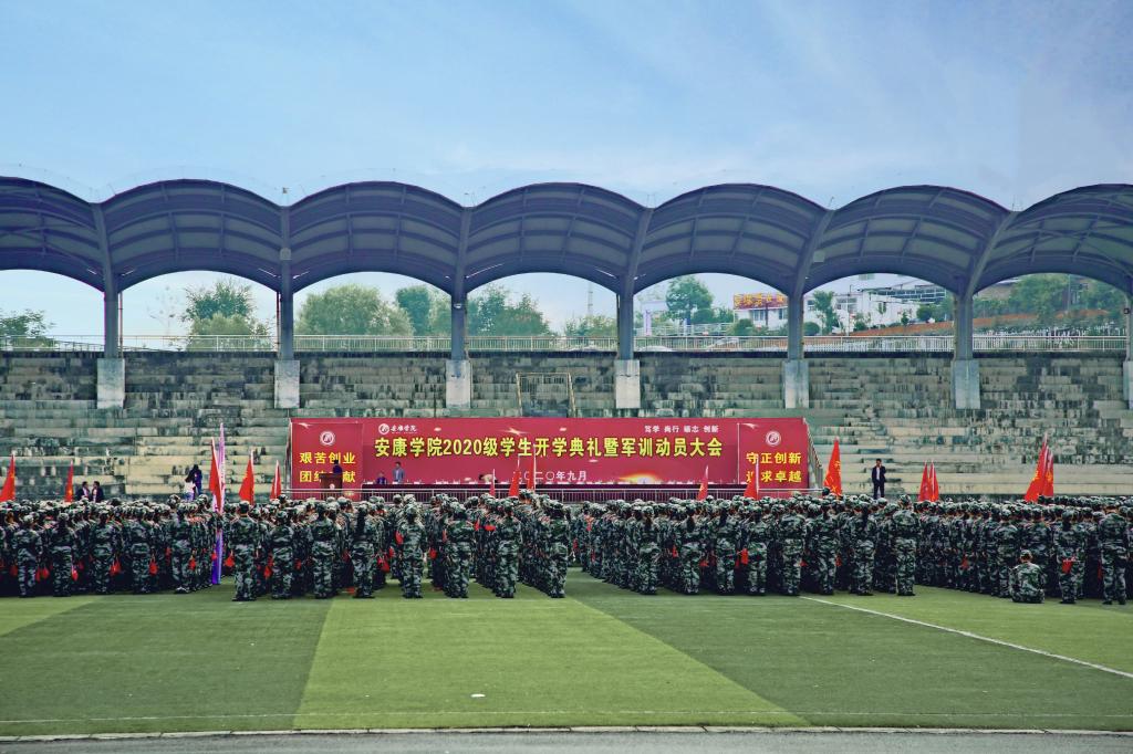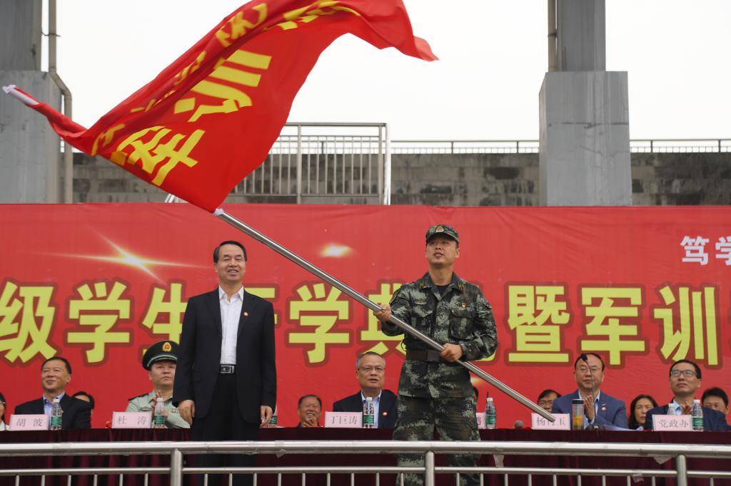 9月29日上午,Beat3652020级新生开学典礼暨军训动员大会在江北校区体育场隆重举行。学校领导班子成员,中国人民武装警察部队安康支队党委书记、政治委员杜涛上校,大队长张鹏少校,各二级学院院长、党总支书记、相关职能部门负责人等出席大会并在主席台就坐。2600余名英姿飒爽的新生与承训部队教官齐聚体育场,以庄严的开学典礼和为期两周的紧张军训,开启大学生活第一课。会上,党委书记王国良为军训团授旗,校长丁巨涛致辞,党委副书记杨行玉主持大会。