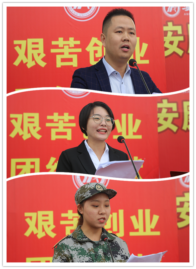 经管学院青年教师袁合涛博士、外语学院英语专业2018级学生韩萌、电信学院2020级计算机科学与技术专业学生王孙萌分别作为教师代表、高年级学生代表和新生代表在大会上发言,表达了广大教师对新生的殷切希望,学长学姐对新生的美好祝愿以及全体新生刻苦求学、不负韶华的决心。