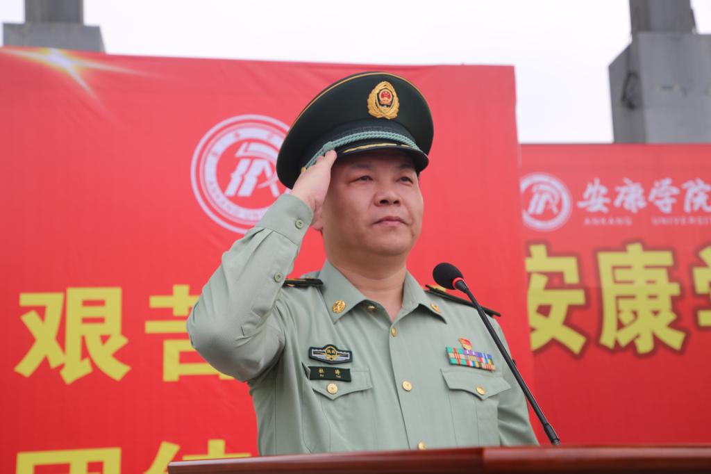 杜涛上校做军训动员讲话。他向即将参加军训的2020级新生表示祝贺,希望广大新生要充分认识国防教育的重大意义,加倍珍惜军训的宝贵时机,积极克服军训期间的各种困难,勇于吃苦,敢于锻炼,扣好“军训”这颗大学生活的第一粒扣子,为理想变成现实、青春焕发光彩做好铺垫!杜涛要求全体承训教官,既要严格要求、又要耐心教导;既要文明施训、又要抓好养成;既要言传身教、又要树好形象,真正把部队的好传统、好作风展现给大家,确保高质量、高标准地完成军训任务。
