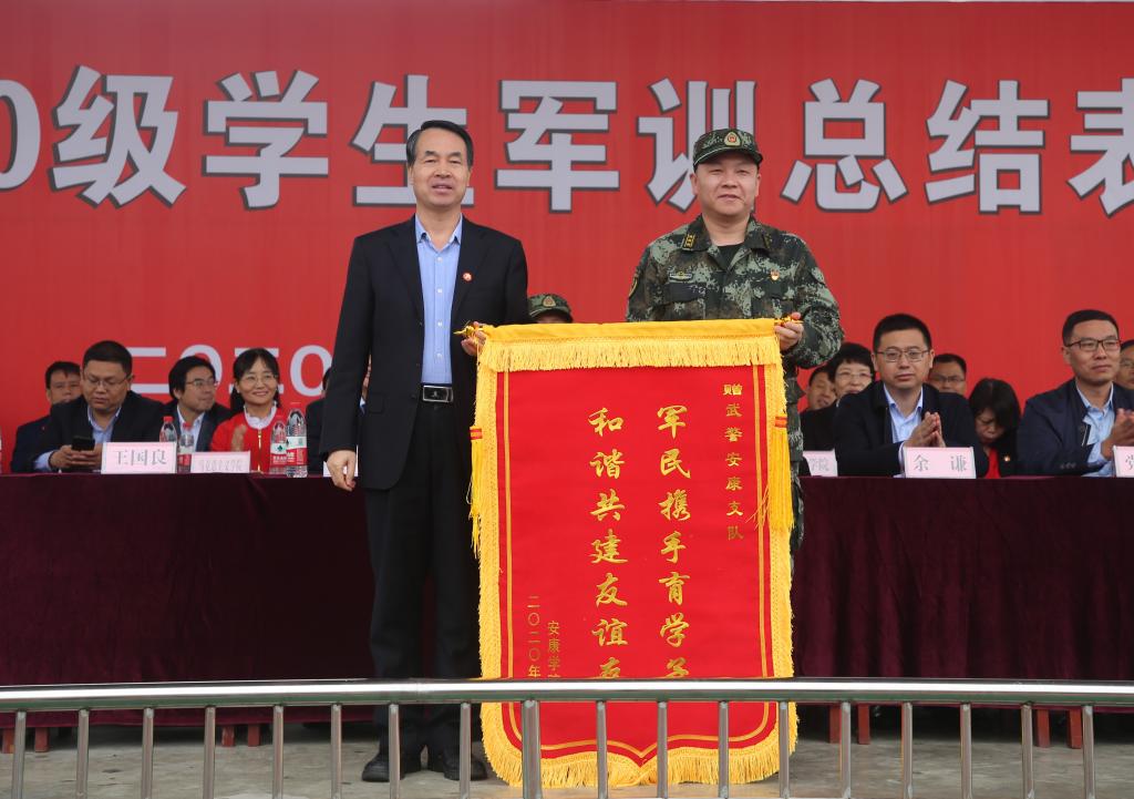 王国良代表学校向承担本次军训任务的安康武警支队赠送了锦旗。