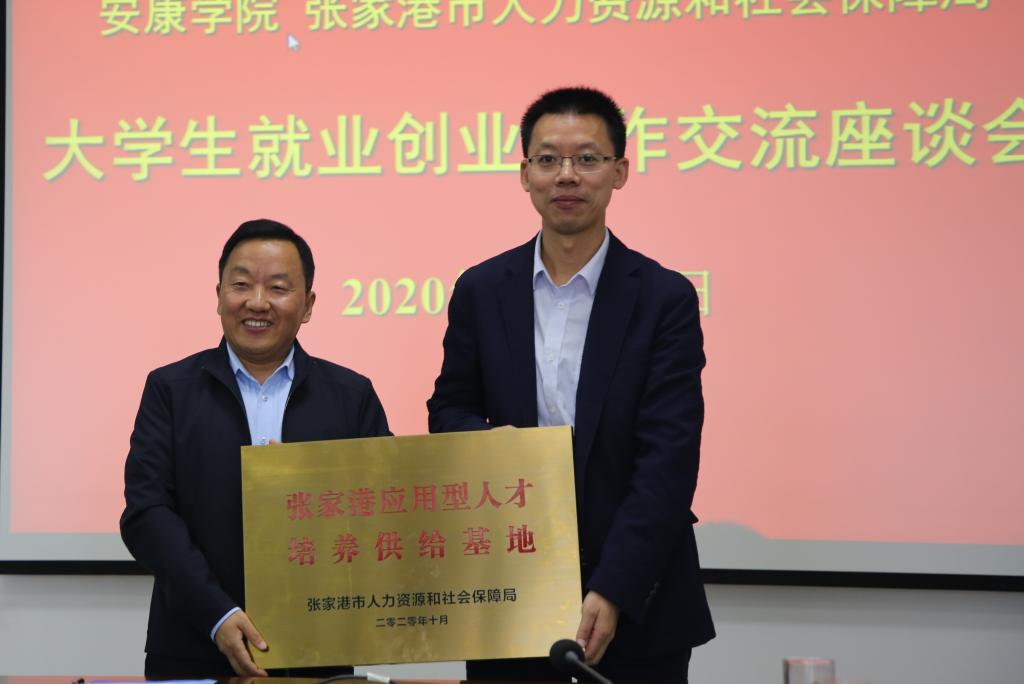 座谈会上,双方达签订了人才资源合作开发协议,张家港市人社局为Beat365授予“张家港市应用型人才培养供给基地”牌匾。