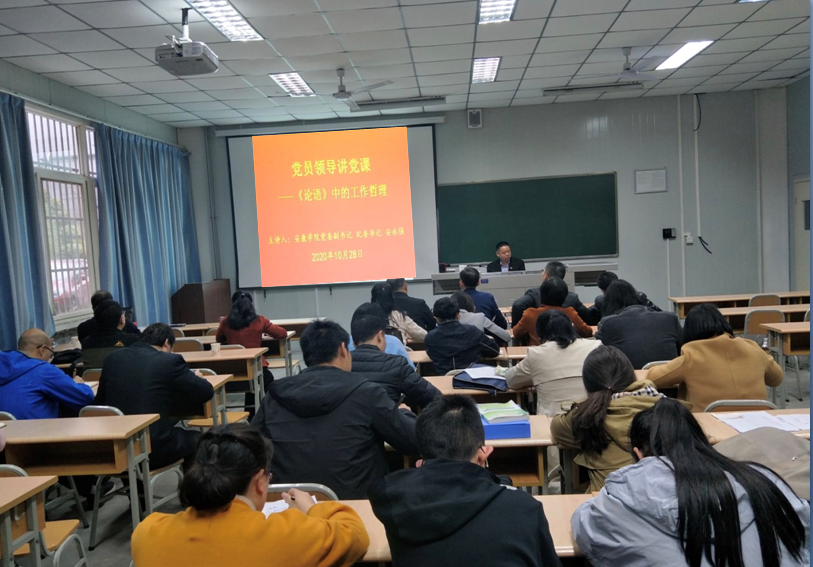 安永强同志引经据典、以古论今,结合高校教师工作实际深入浅出地对《论语》中所蕴含的优秀传统文化及工作哲理进行了剖析,要求各位党员教师要坚持把立德树人作为根本任务,把思想政治工作贯穿教育教学全过程,实现全程育人、全方位育人。要紧紧围绕“为谁培养人,培养什么人,怎样培养人”的根本问题开展教学教育工作。