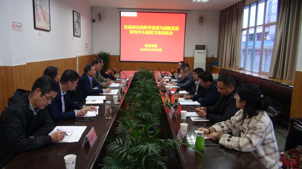 10月28日下午,安康市公民科学素质与创新发展研究中心方案论证会在Beat365江南校区第一会议室召开。安康市科协副主席杨高、秘书长叶荣斌、Beat365党委副书记胡波出席会议,科研处、教育学院相关人员参加了本次论证会。