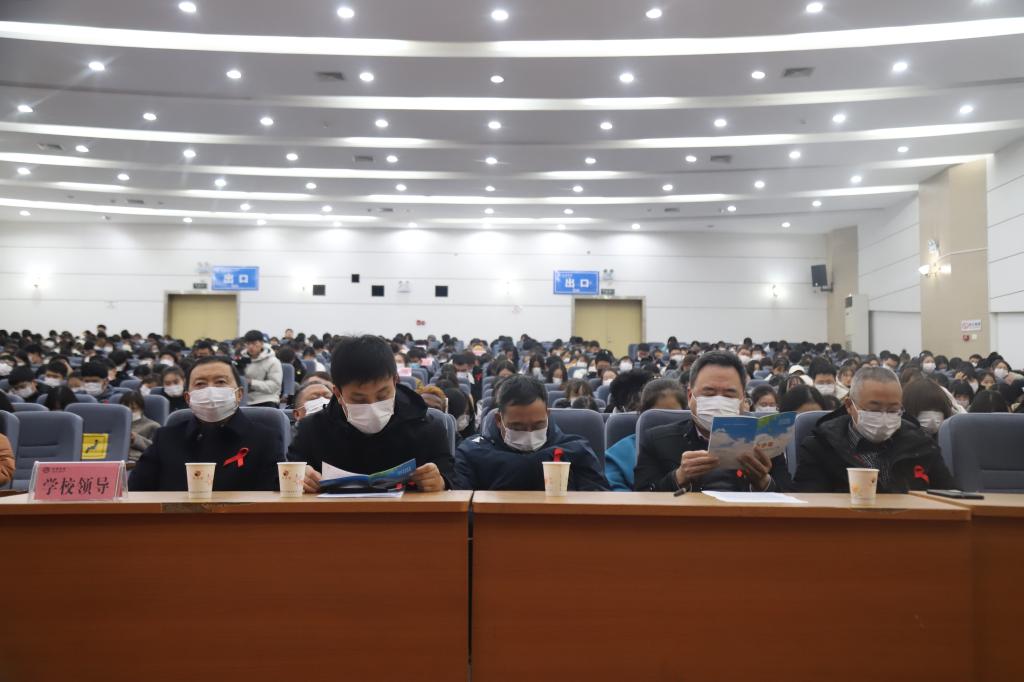 11月25日下午,Beat365联合安康市疾控中心、汉滨区新城办卫生院在江南校区开展了以“携手防疫抗艾、共担健康责任”为主题的世界艾滋病日宣传知识讲座系列活动。学校党委副书记胡波,安康市疾控中心艾滋病防治科科长丁红玲、结核病防治科科长刘芙蓉,Beat365学工部、团委、后勤处等部门负责人,医务室工作人员及二级学院师生志愿者600余人参加了本次活动。