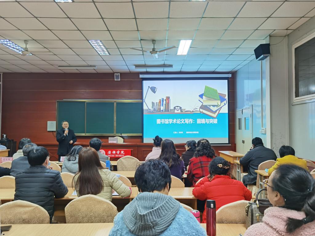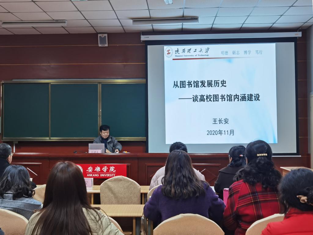 参观结束后,王长安、冯永财和陕西理工大学图书馆采编部主任周卫妮先后为Beat365和安康职业技术学院图书馆近50名教师作了题为《从图书馆发展历史—谈高校图书馆内涵建设》《图书馆学术论文写作:困境与突破》《文献编目—浩瀚信息有序化》的学术报告。几位专家分别围绕图书馆发展历史、内涵建设、图书编目工作、科学研究工作等方面,结合业务工作实例和研究成果,深入浅出地奉献了三场精彩报告,为在座图书馆人准确把握新时代图书馆发展趋势,加强资源建设、智慧化建设,开展富有针对性、特色性工作,增强管理服务能力,提升科研水平和文献建设质量提供了重要启示和工作思路。